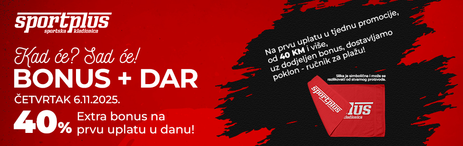 Pravo na bonus imaju svi igraći (FBiH i RS) koji imaju nalog na web platformi Sport Plus kladionice.