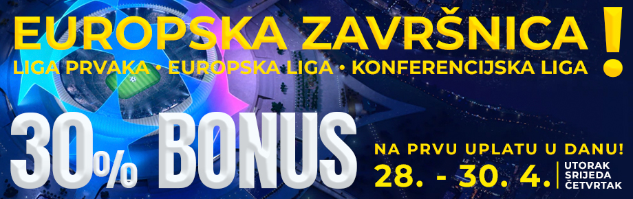 UTORAK 28.04.2026. i ostvari 30% EXTRA BONUSA!